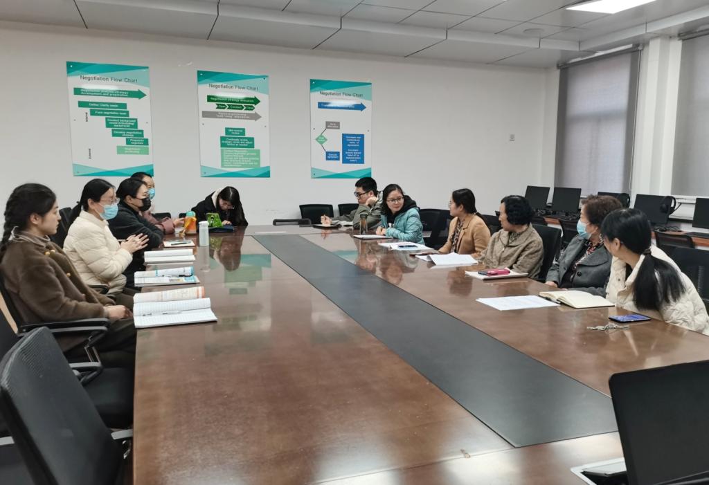 2023年11月28日,我院大学英语第一教研室在W107开展教研活动,深入研讨英语阅读圈教学设计。大学英语第一教研室主任宣菡静、教研室全体老师参会,宣老师主持会议。