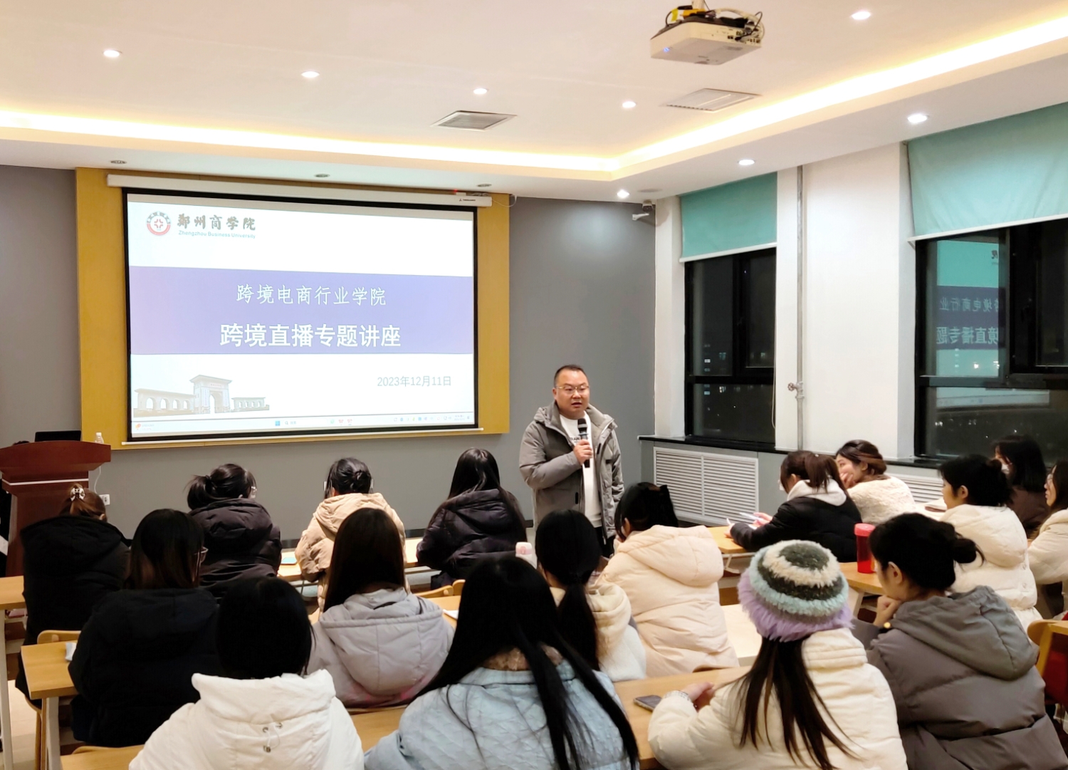 为引领学生了解跨境直播趋势及未来发展方向,打造商务英语专业跨境电商特色,我院于12月11日晚在图书馆五楼报告厅举行跨境直播专题讲座。本次讲座特邀福建亿学集团产品经理聂威老师为主讲人,为21级“跨境电商英才班”学员及外院学院首届“跨境电商外语直播大赛”的参赛选手带来了一场别开生面的专题讲座,我院院长邱培磊、商务英语教研室教师李明豪、周璐、王玉等参加此次讲座。讲座由商务英语教研室主任葛莹辉主持。