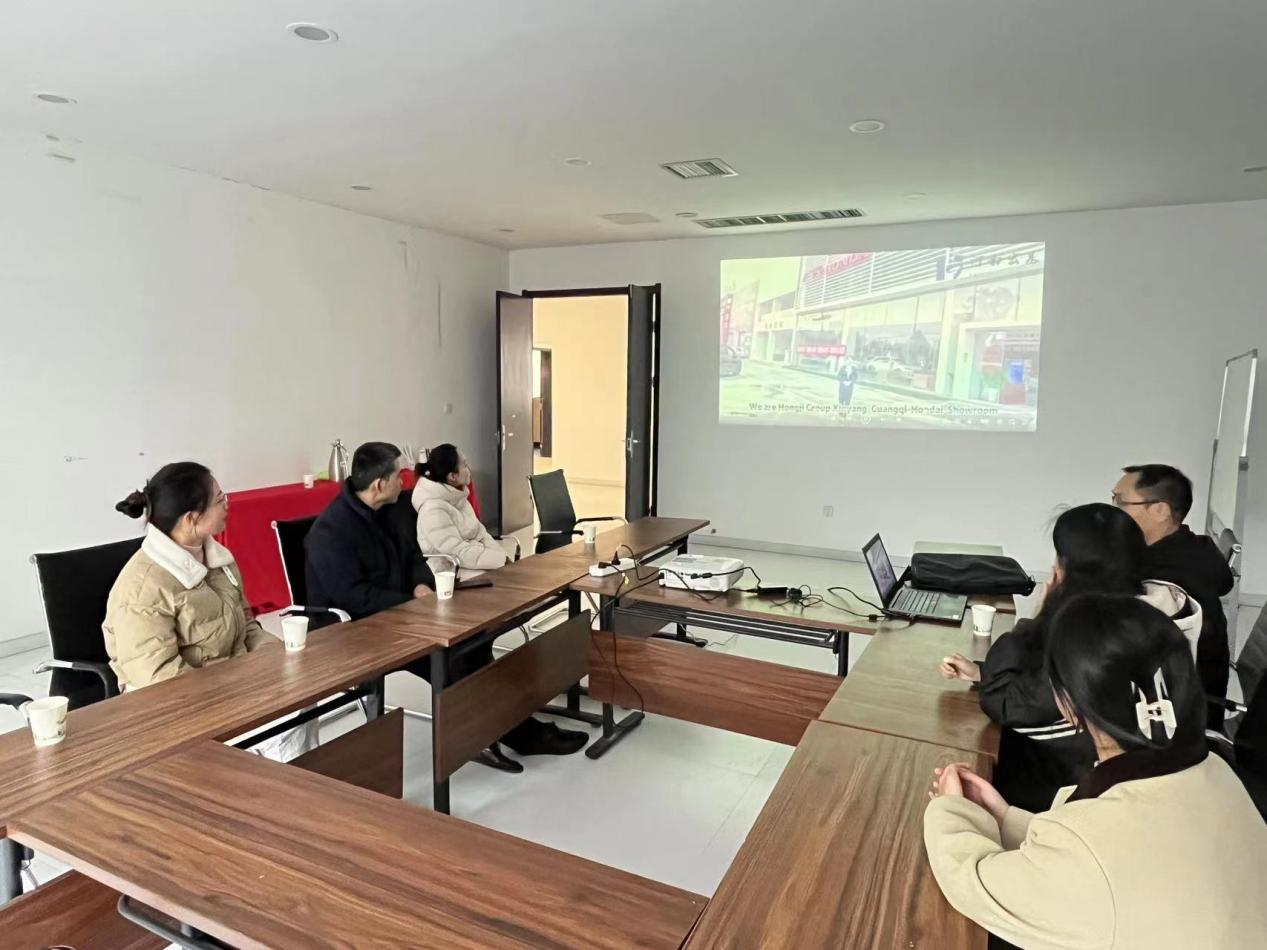 在河南宏基荣业汽车销售有限公司,公司黄总向学院老师们做出介绍,并对实习学生的工作表现给予了肯定,王书记一行参观了学生的工作地点,观察学生的工作状态,了解学生的工作内容。