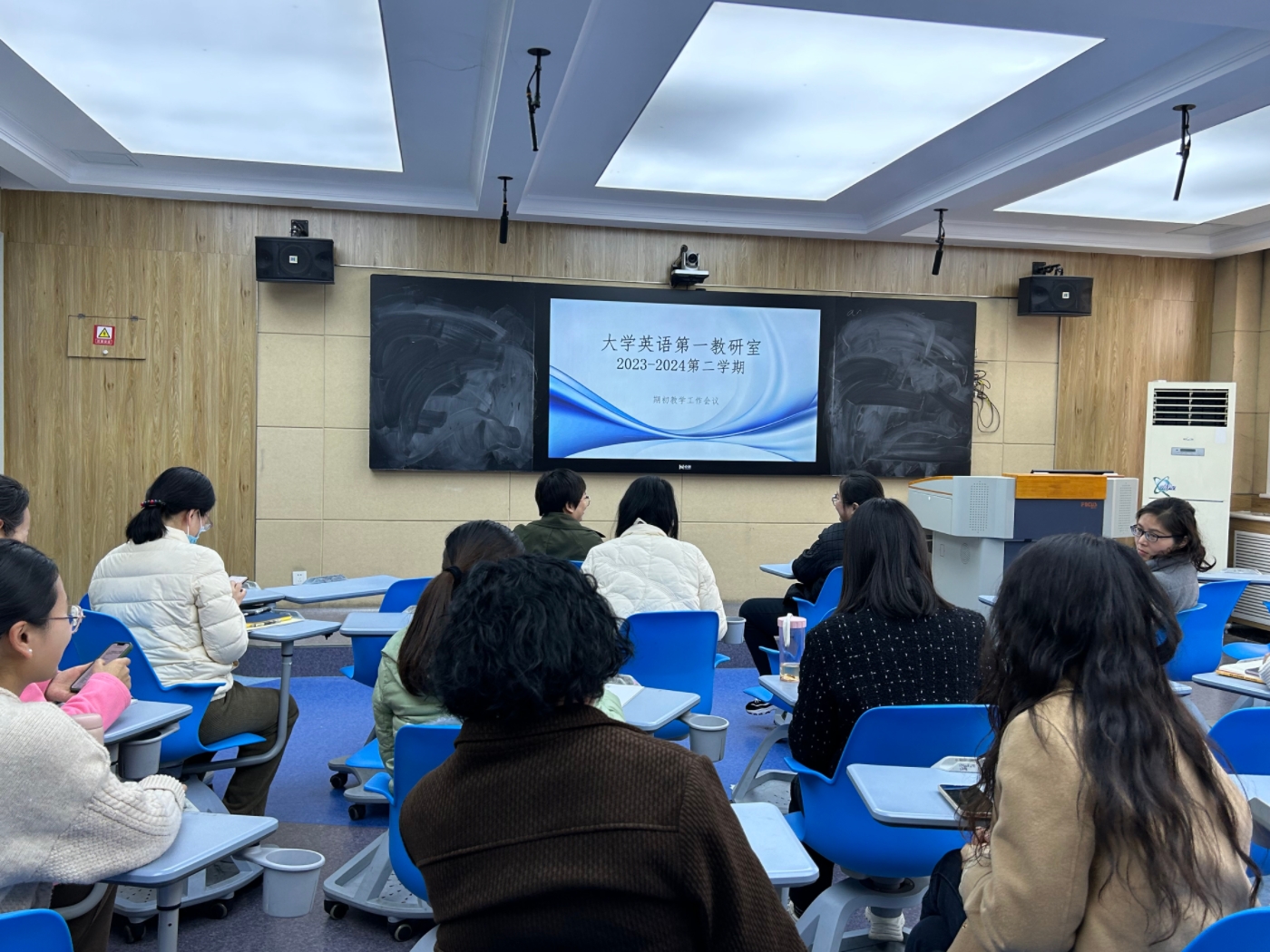 2月25日下午,大学英语第一教研室在外语楼W104召开了本学期第一次工作会议。本次会议由教研室主任宣菡静主持,教研室全体教师出席参加,会议根据教研室接下来的教学工作进行整体部署。