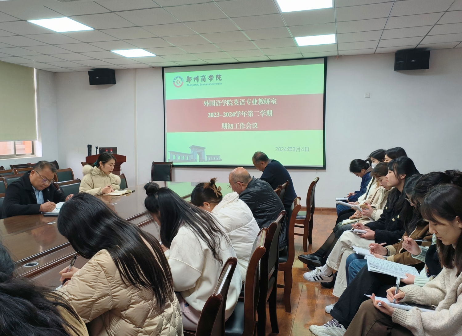 3月4日下午,我院英语专业教研室于外语楼W209召开期初教学工作会议。本次会议由教研室主任程玮主持,院长邱培磊及教研室全体教师参加此次会议。
