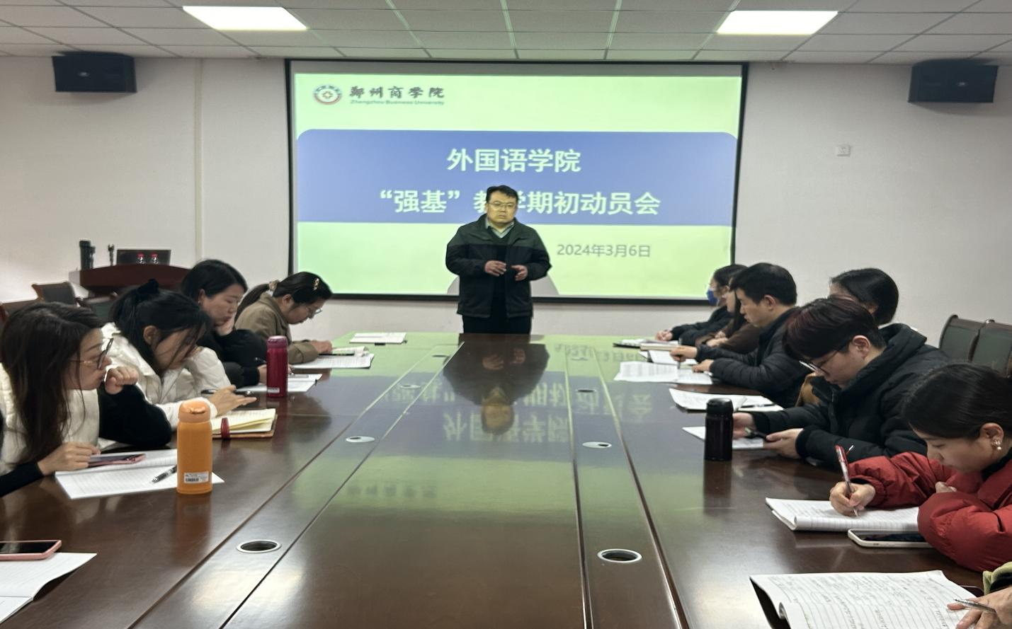 为持续夯实学生的语言基础,强化对学生语言基础能力的培养,3月6日下午,我院在外语楼W209召开了本学期外国语学院“强基”教学期初部署会。各专业基础语言课程教师参加会议,副院长赵保成主持会议。