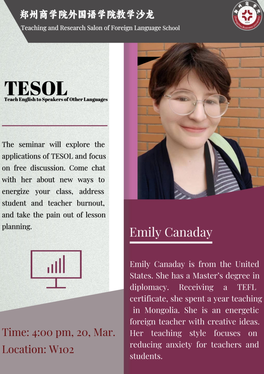 本次教学沙龙将探讨TESOL教学模式在教学中的应用,欢迎全校教师踊跃报名参加,共同研讨、一起交流。