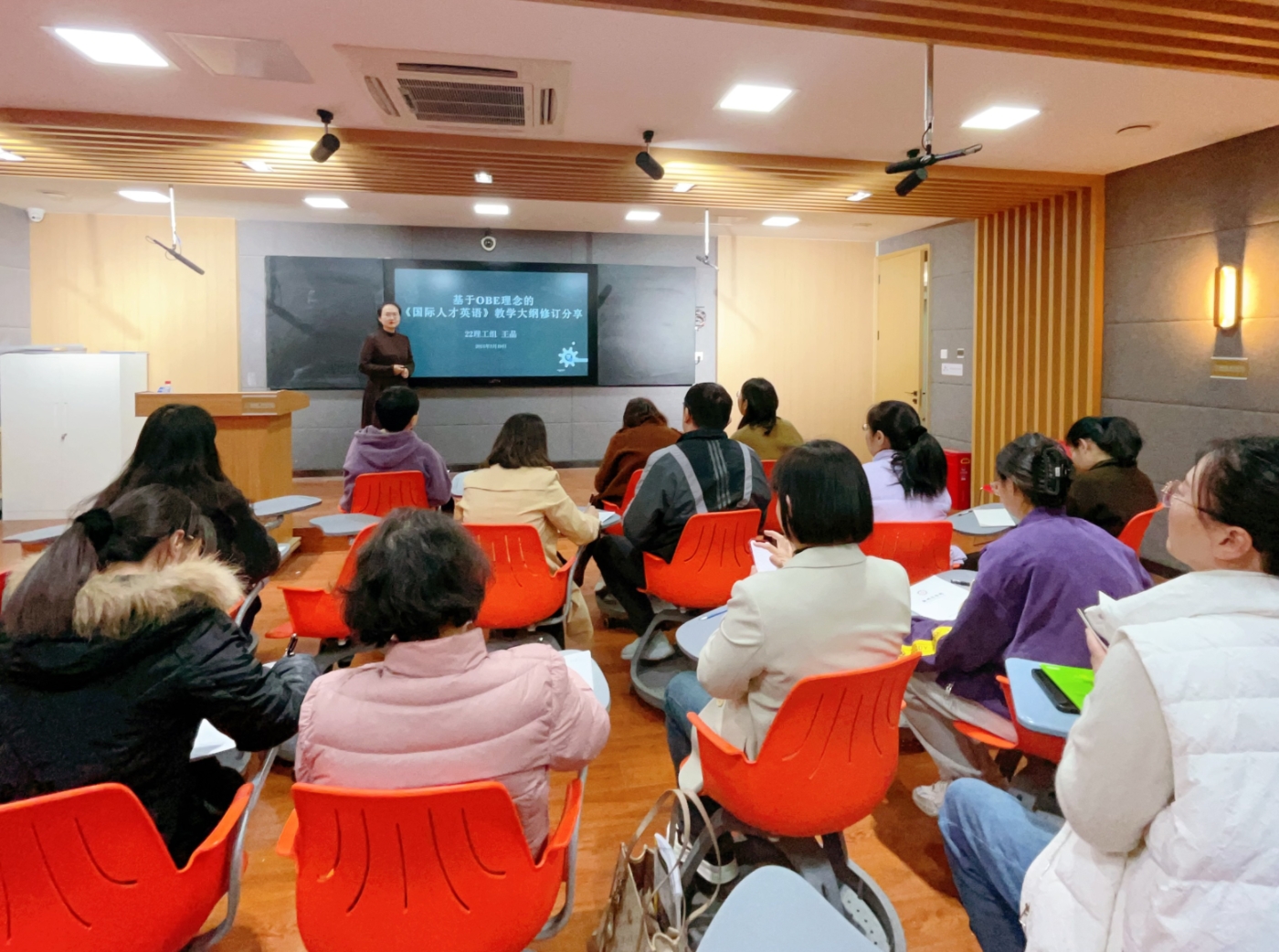 为迎接beat3652025年教育部本科教学合格评估工作,构建基于OBE理念的大学英语课程体系,我院大学英语第二教研室于3月19日下午召开了基于OBE理念的《国际人才英语》课程教学大纲修订分享会,教研室全体教师参加会议。会议由教研室主任王霞老师主持。