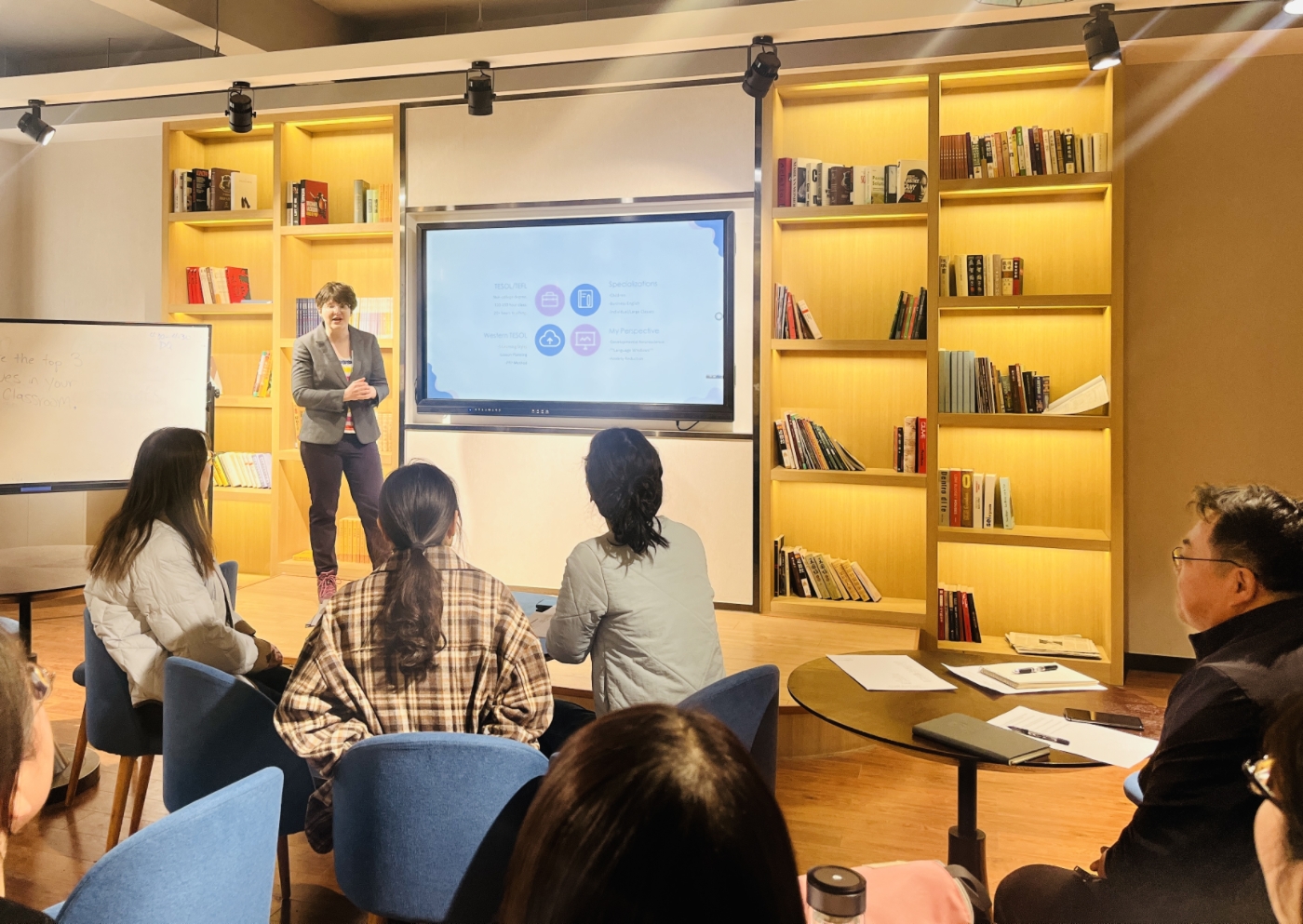 沙龙由外国语学院外教教研室主任高爱景主持,外籍教师Emily Canaday 主讲。首先,Emily老师介绍了TESOL教学模式和理念,TESOL(Teaching English to Speakers of Other Languages)课程,即对外英语课程。在英语母语国家,尤其是美国等移民国家的TESOL课程设计从学生学习方式、教师角色界定、教学内容的专业性、多元文化的渗透、课下活动的构建、网络资源的应用呈现了多样化和个性化。英语母语国家的TESOL课程具有前瞻性和示范性,对我国外语教学可提供借鉴的经验和启示。其次,与会教师围绕Emily提出的5个问题分组进行研讨交流,各自分享教学经验和实践案例。这种讨论的方式不仅加深了老师对TESOL教学理论的理解,而且通过研讨老师可以提出一些解决课堂实际问题的对策。