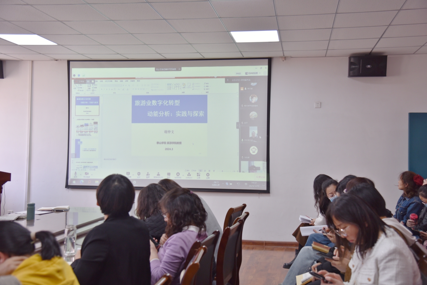 为提升教师团队科研水平和素养,更有针对性地准备高级别项目申报,3月29日下午,我院特邀请国家社科基金项目主持人、中国旅游研究院博士后、泰山学院旅游学院副院长谢仲文教授作题为《AIGC浪潮下数字化转型动能分析与提升路径研究》的学术讲座,外语学院院长邱培磊、副院长赵保成及全体无课教师在W209观看了此次讲座,并进行了深入的学习交流。