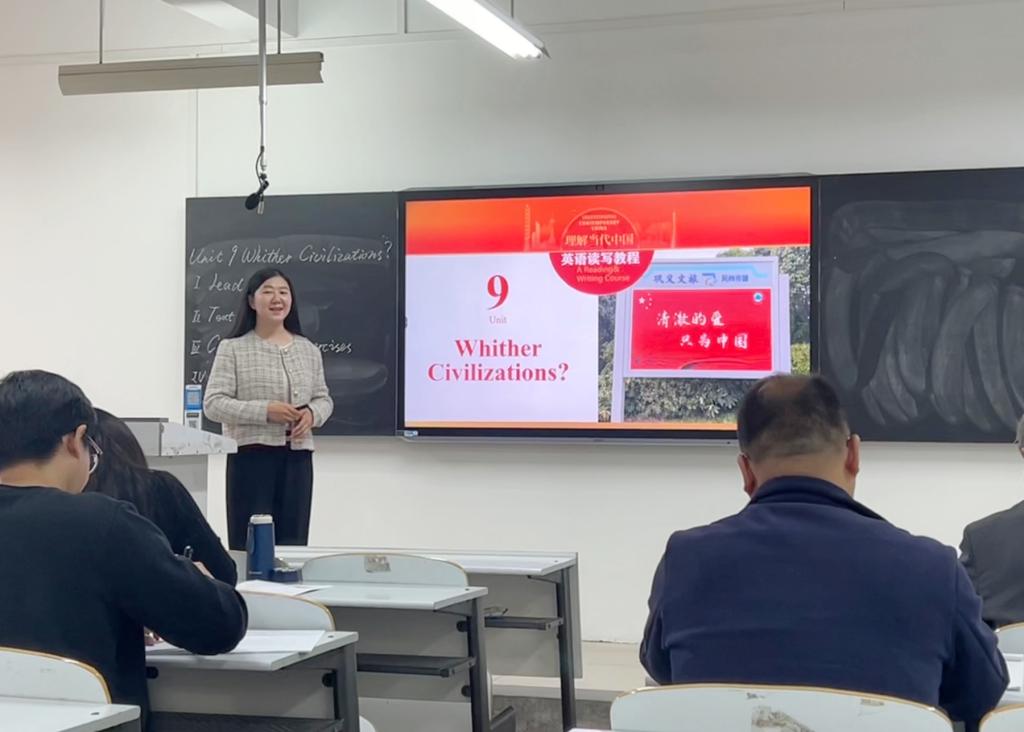 六位参赛教师以《理解当代中国》英语、日语系列教材为教学材料,准确把握《理解当代中国》教材的编写理念和教学要求,围绕单元主题“人类命运共同体”,深入落实课程思政,展示教学设计与课堂活动,探索价值塑造、知识传授、能力培养相统一的外语课堂教学路径。各评委老师从教学理念、教学设计、教学方法、板书及PPT设计、课程思政建设等方面对各位参赛教师提出了宝贵意见和建议。