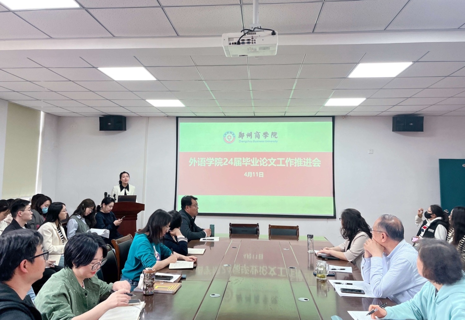 为切实规范本科毕业生毕业论文(设计)过程管理,提高毕业论文(设计)质量,4月11日下午,外国语学院在W209会议室召开2024届毕业论文指导推进会,院长邱培磊、副院长赵保成以及全体论文指导教师参加会议。