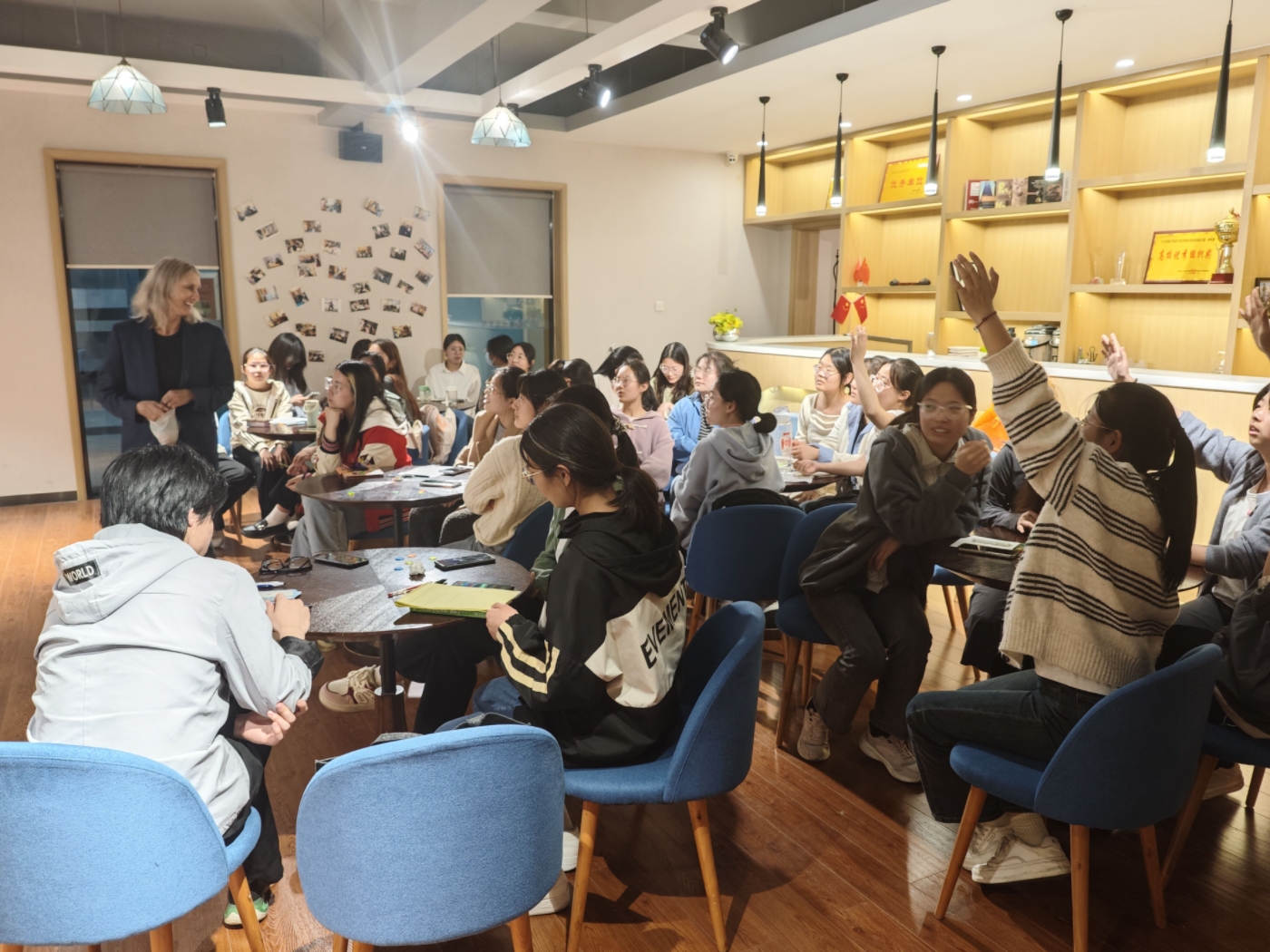 活动伊始,外教老师kerin向学生们做了自我介绍,拉近了与同学们的距离,随后鼓励大家积极提出问题并共同探讨,最后外教提出一个话题,“当你想和朋友一起出去玩的时候,应该如何正确的表达才不会被误会。”同学们对此发表了多样见解。此次多元文化角活动氛围轻松愉悦,同学们踊跃参与,积极发言,进一步提升了自身的英语口语表达能力和国际视野。