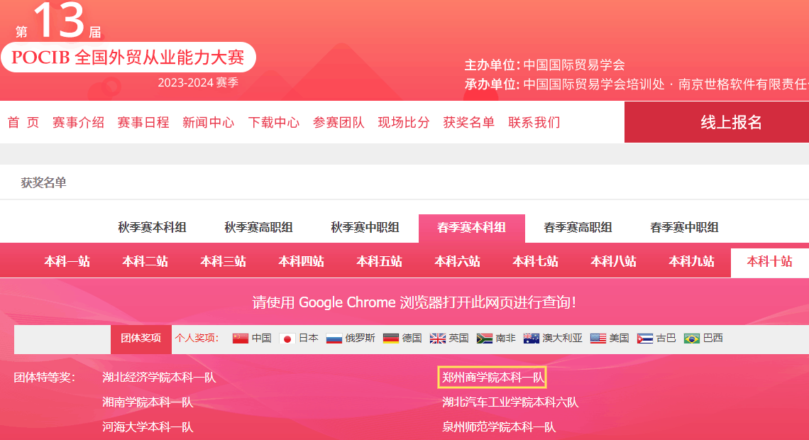 4月19日,由中国国际贸易学会和全国外经贸职业教育教学指导委员会主办的“第十三届POCIB全国外贸从业能力大赛(春季赛)”圆满结束。本次大赛共有295所院校、886支队伍、共计8860名选手参加,我院2021级商务英语专业组建3支团队参与了本科组的比赛。经过长达13天的激烈角逐,商务英语一队、商务英语二队、商务英语三队均斩获团体特等奖,30名参赛队员分别有6人获个人一等奖、16人获个人二等奖、8人获个人三等奖。