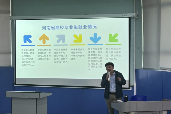 为进一步拓宽就业渠道,培养学生的出国就业意识,增强对出国就业形势的认知。4月24日上午,外语学院在2号楼116阶梯教室针对部分24届毕业生和25届在校生举办了“大学生出国就业工程” 宣讲会。本次宣讲会由河南大学生就业服务中心常兵老师主讲。