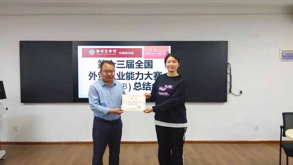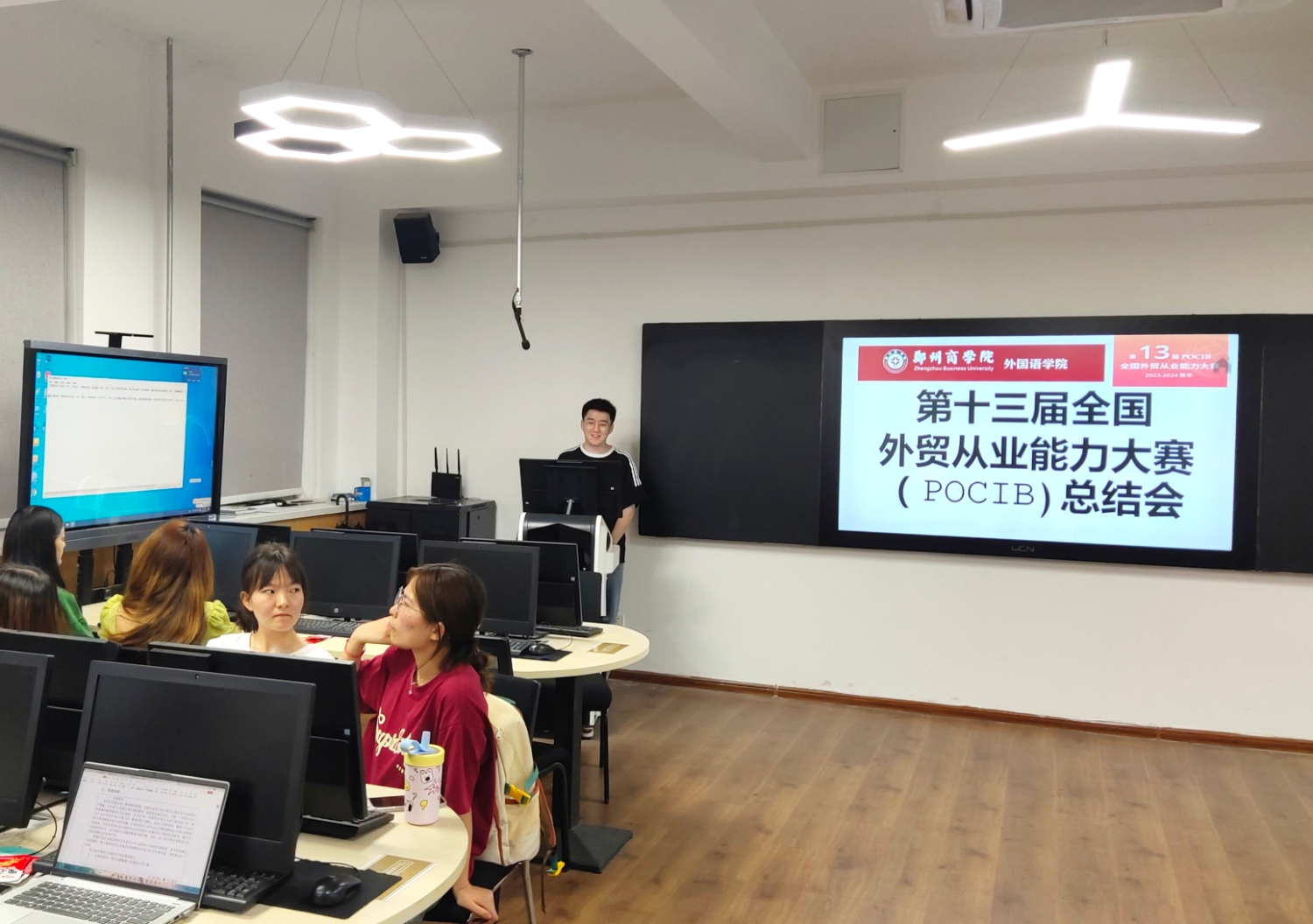 4月19日,“第十三届POCIB全国外贸从业能力大赛(春季赛)”落下帷幕,我院2021级商务英语专业3支团队均斩获团体特等奖,其中包括个人一等奖6名、个人二等奖16名、个人三等奖8名,成绩显著。为总结交流大赛经验,我院于4月22日在W103召开“POCIB大赛”经验总结交流会。会议由商务英语教研室主任葛莹辉老师主持,我院院长邱培磊、商务英语教研室李明豪老师、王玉老师以及全体参赛成员参加此次总结会。