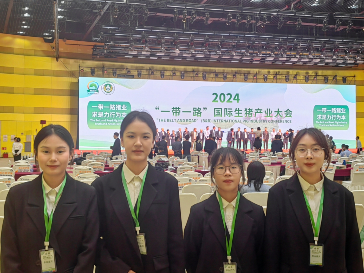 4月26日,我院派出4名学生作为志愿者前往郑州国际会展中心参加了由河南农业大学和中世汇展国际展览有限公司主办的“一带一路”国际生猪产业大会。