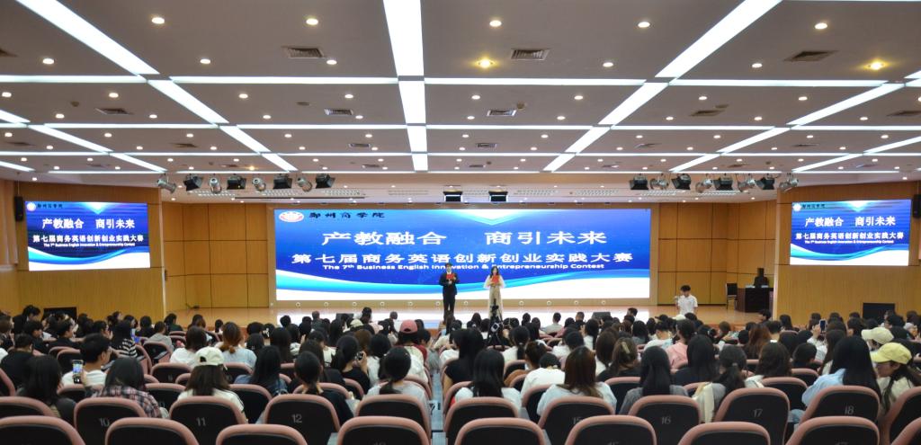 秉承“赛教融合、课赛融通、以赛促教、以赛促学”的理念,激励学生学以致用、知行合一,全面提升创新型人才培养成效,外国语学院于5月15日在图书馆一楼国际报告厅举办第七届商务英语创新创业实践大赛,外国语学院党委书记王克志、副院长赵保成、教务处课务科科长周培娟及四名企业代表出席此次活动。评委团队共5名,由我院教师和企业专家组成。本次大赛首次在抖音平台直播。