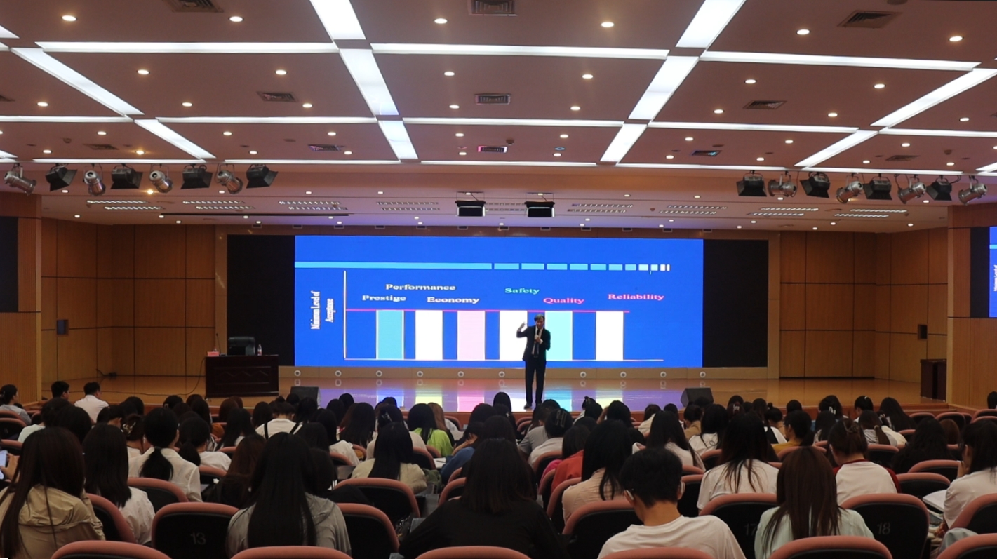 为增进学生对市场营销领域的深入理解,提升国际视野与专业综合素养,5月17日下午,beat365特邀请温州肯恩大学商务与公共管理学院市场营销专业的领军人物Somkiat Mansumitrchai教授,在图书馆一楼报告厅开设了一场名为《思维斗争:市场营销的关键是定位》的专题讲座。此次活动由外国语学院赵保成副院长主持,近300名外语学院学生踊跃参与。