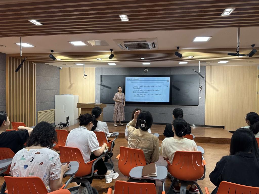 2024年5月21日,大学英语第二教研室全体教师在W108举行教研室会议,考研英语课程组组长孙冰作为主讲人,向全体教研室教师展示了考研课程组在提升考研英语教学质量方面的探索和成果。