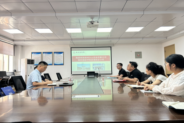 为进一步深化校企合作,共建双赢之路,全面推进产教融合,切实提高应用型人才的培养质量,5月31日上午,我院与郑州白云实业有限公司在外语楼107商务谈判室举行了校企合作洽谈会。外语学院副院长赵保成、就业专员兰敬高、毕业班辅导员及郑州白云实业有限公司经理张仁义、人事经理郭跃峰参加会议。