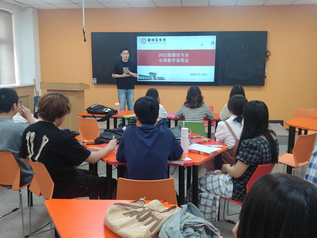 为切实提高人才培养质量,满足学生个性化发展需求,有的放矢地进行差异化教学,我院德语专业于5月30日下午在外语楼W113教室召开了2022级分类教学说明会,德语专业全体教师和22级德语专业全体学生参加了此次会议。