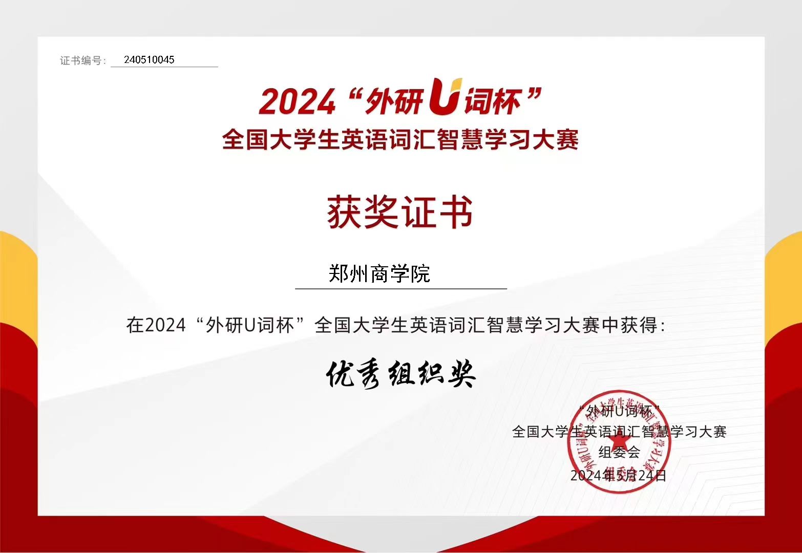 2024全国大学生英语词汇智慧学习大赛由外语教学与研究出版社主办,是面向全国高校非英语专业大学生的英语词汇能力竞赛。大赛旨在以赛促学、以智助学,为大学生搭建词汇学习交流的有益平台、激发大学生英语词汇学习兴趣、丰富词汇储备、筑牢英语基础。我院大学英语教研室教师积极组织全校非英语专业本科生积极参与比赛,共有1000余名同学参与此次大学生英语词汇智慧学习大赛。大赛组委会授予beat365“优秀组织奖”称号。