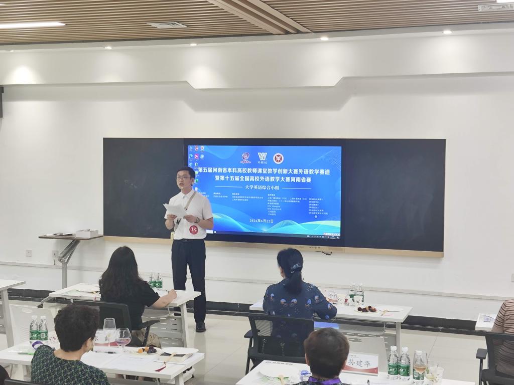 近日,我院教师在第五届河南省本科高校教师课堂教学创新大赛外语教学赛道暨第十五届全国高校外语教学大赛河南省赛英语教学组比赛中取得了优异成绩。郭彪老师和张灿老师分别在大学英语综合小组和大学英语视听说小组比赛中荣获省级一等奖和二等奖。