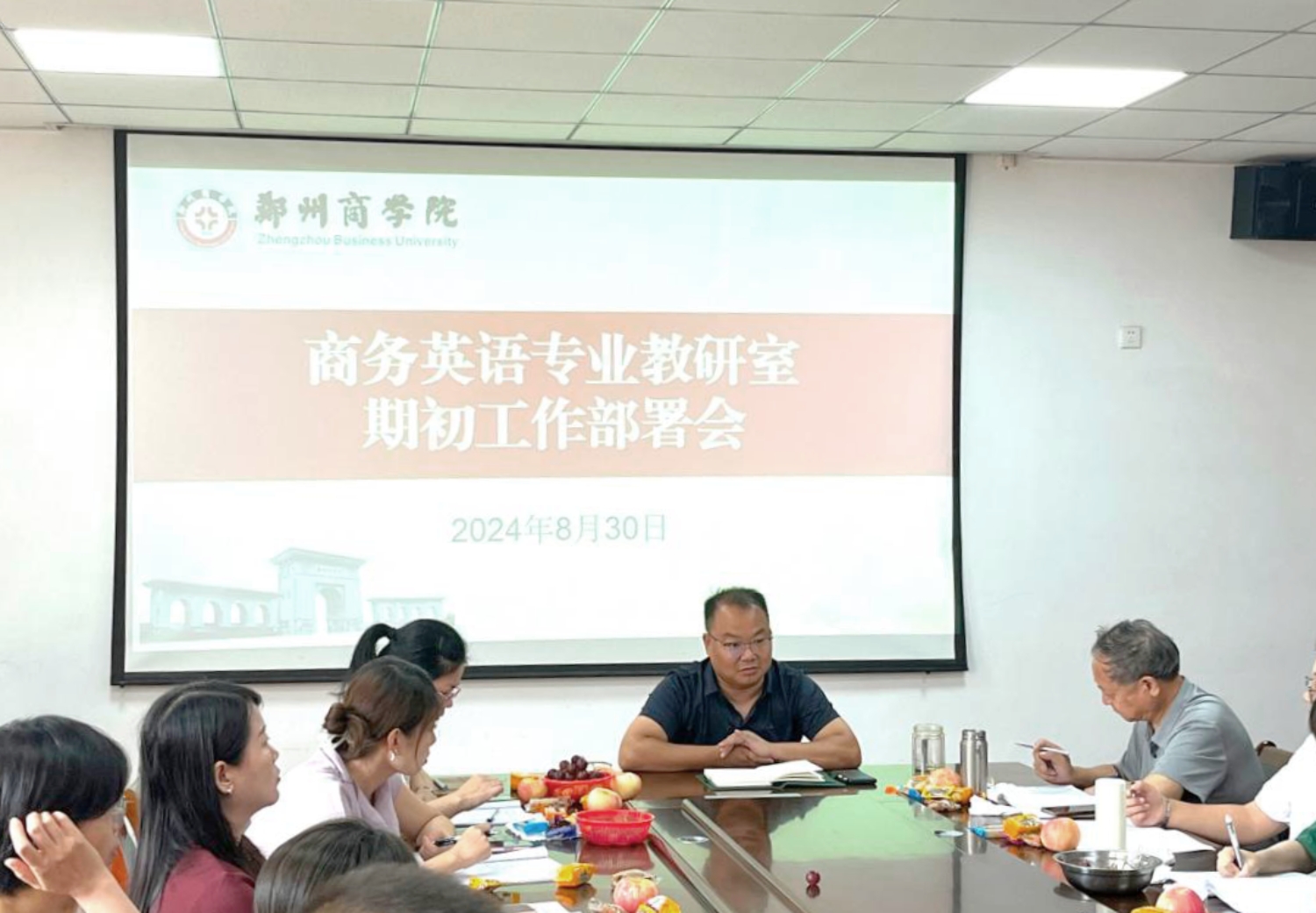 8月30日,商务英语教研室在209会议室召开新学期工作部署会议,会议由教研室主任葛莹辉老师主持,邱培磊院长和赵保成副院长出席会议,教研室全体教师参加会议。