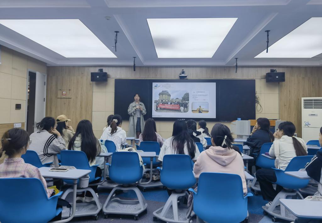 今年暑假刘雅琪同学经教育厅选赴英国牛津大学、剑桥大学、西苏格兰大学研习交流。在本次交流分享会上,她围绕申请准备、研学经历、日常生活、专业学习等方面,进行了内容丰富、生动有趣的分享。她指出此次暑期赴英研学,不仅帮助她提升了专业水平,还通过跨文化交流,开阔了国际视野,培养了全球意识,给未来学业规划和职业发展带来了的优势。刘雅琪同学还特别向学弟学妹强调要学好专业课,强化口语练习,挺高英语听说能力,多参加各类竞赛,提高专业能力和综合素养。