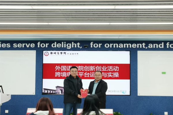 活动伊始,院长邱培磊宣读了关于聘请贺清涛总经理为我院校外创新创业导师的决定并为其颁发聘书。邱院长指出,根据现在社会的创新创业形势,我院学子在有关跨境电商平台运营与实操的就业方向,更应注重第二外语的学习。