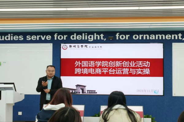 随着全球化进程的加速和电子商务的迅猛发展,跨境电商逐渐成为创业与就业的重要方向。我院结合这一趋势,开展了“创新创业”专题活动,旨在培养学生的国际贸易能力和电商实践技能。为此,11月5日下午我院特邀巩义市润达管道设备制造有限公司总经理贺清涛在外语楼101智慧教室进行了一场关于跨境电商平台运营与实操的讲座,帮助学生深入掌握跨境电商的运营机制,提升创新创业能力。