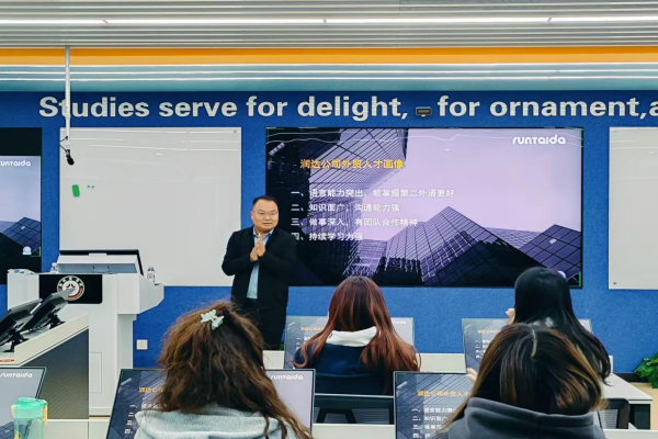 活动期间,贺总介绍了润达公司的发展历程,以及外贸市场行业现状,并从产品、人员、平台分析了从事跨境电商的条件,用一系列数据向大家展示了跨境电商的主要特征,详细分析了每个平台的优缺点,以及外语专业学生如何结合跨境电商平台特征尤其是阿里巴巴国际站的要求发展自身专业素养与能力。