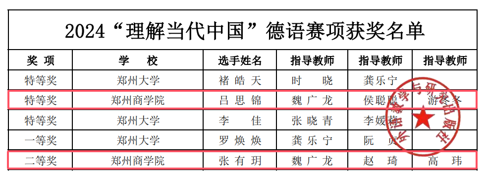 11月11日,2024“外研社·国才杯”“理解当代中国”全国大学生外语能力大赛多语种组省赛奖项公布,我院德语专业两位学子以扎实的外语综合能力和丰厚的文化素养在省赛中取得了优异成绩。其中,21德语1班吕思锦荣获特等奖,晋级国赛。