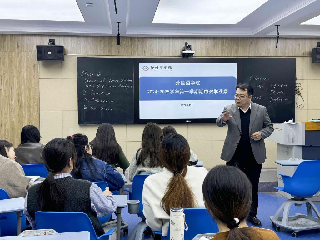 为进一步提升青年教师教学水平,学习优秀课程设计与教学范式,我院于2024年11月12日在W104成功举办了青年教师观摩课活动,赵保成副院长及我院青年教师参加此次活动。本次活动由英语教研室的李娜老师分享,主题为Units of Translation and Discourse Analysis。