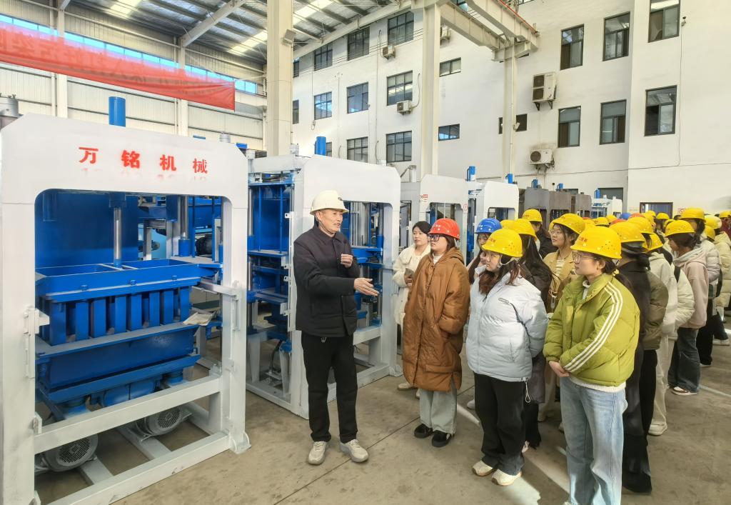 随后,全体师生前往企业参观第二站——河南万铭机械制造有限公司。在专业技术人员的带领下,师生们现场观摩破碎机等各种机械产品,近距离观察了万铭机械公司多样化的产品制造过程。其中,该公司高标准、严要求的生产过程以及对外出口业务给师生留下了深刻的印象。针对大家关于机械产品功能等方面的疑问,技术人员进行了耐心解答,这进一步提高了学生对机械行业出口需求的认知。