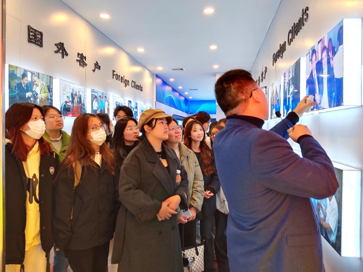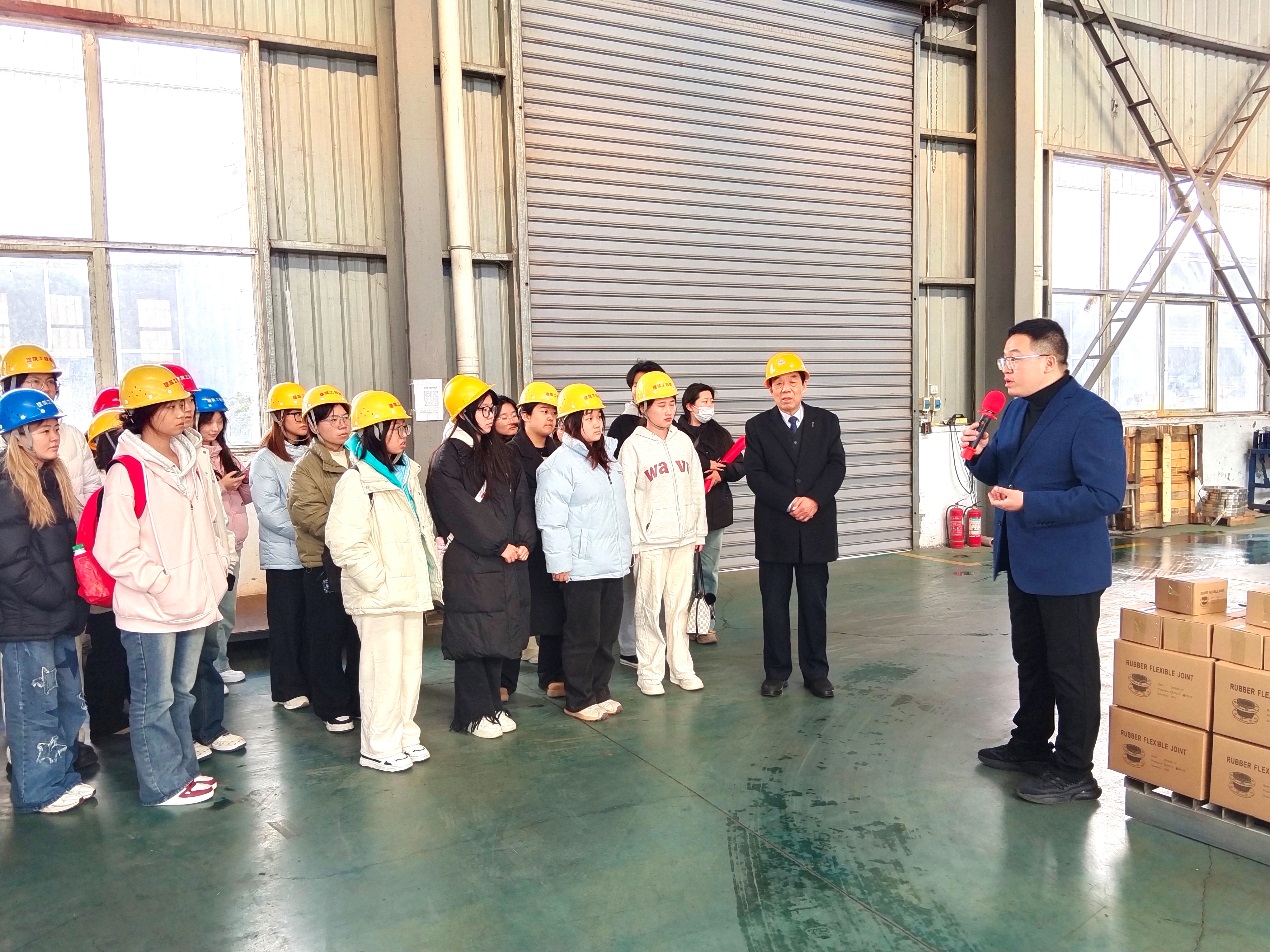 在昌茂集团博物馆,销售经理赵朝纲带领同学们参观了昌茂集团在技术创新、行业引领、对外贸易等方面所取得的辉煌成就,同学们进一步了解了昌茂集团的发展历程、发展规模以及法兰式橡胶止回阀和橡胶接头等重要出口产品,对该公司国际贸易业务有了初步认识。