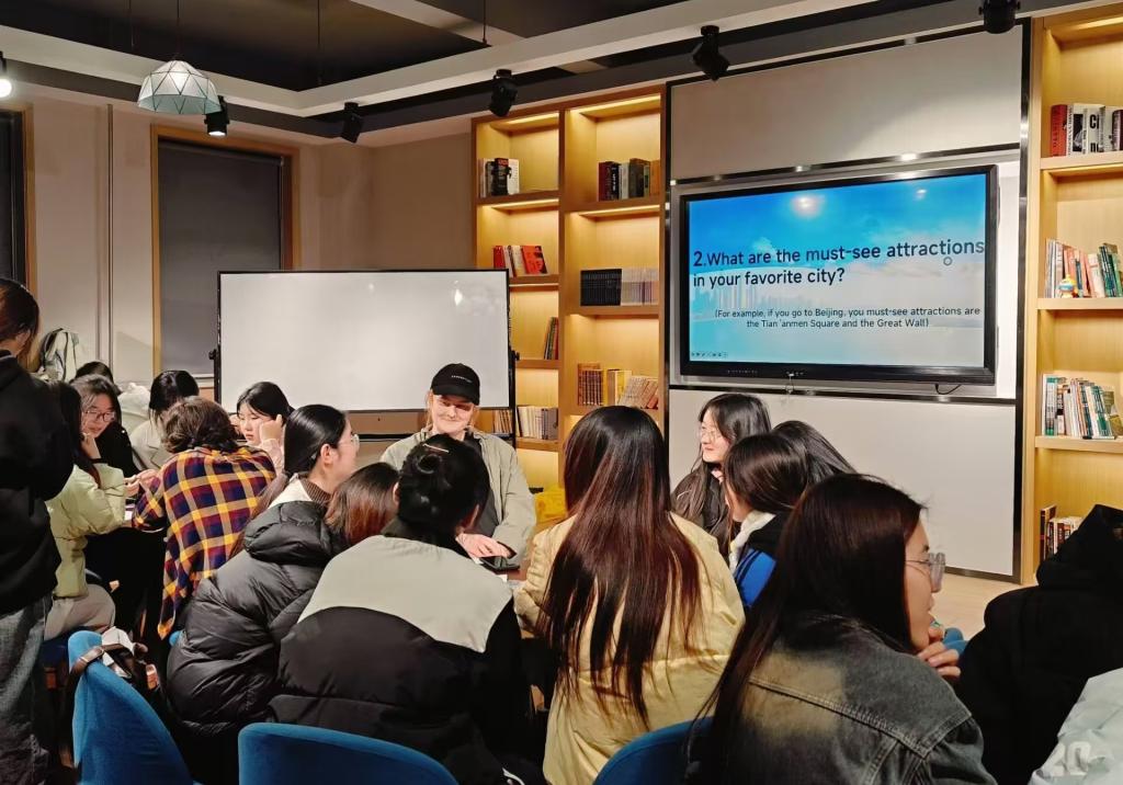 文化交流,心灵相通的桥梁,本次以”Favorite City”为主题的英语角活动于12月3日在W102举行,活动旨在和大家共创一个创新多彩的友好交流平台,特邀外教老师John、Emily、Shaynah参加本次英语角活动。同学们在分享自己所爱之城的同时,还提高了自己的语言表达和社交能力。