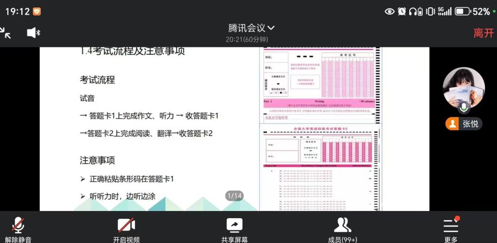 为了帮助学生更好地准备即将到来的大学英语四级考试,提高考试通过率,12月4日晚,大学英语第一教研室教师张悦为全校学生做了详尽的四级考前线上辅导。分享涵盖考试简介、考试流程、注意事项、备考指南等多个方面,为学生提供了一个全面的复习框架。