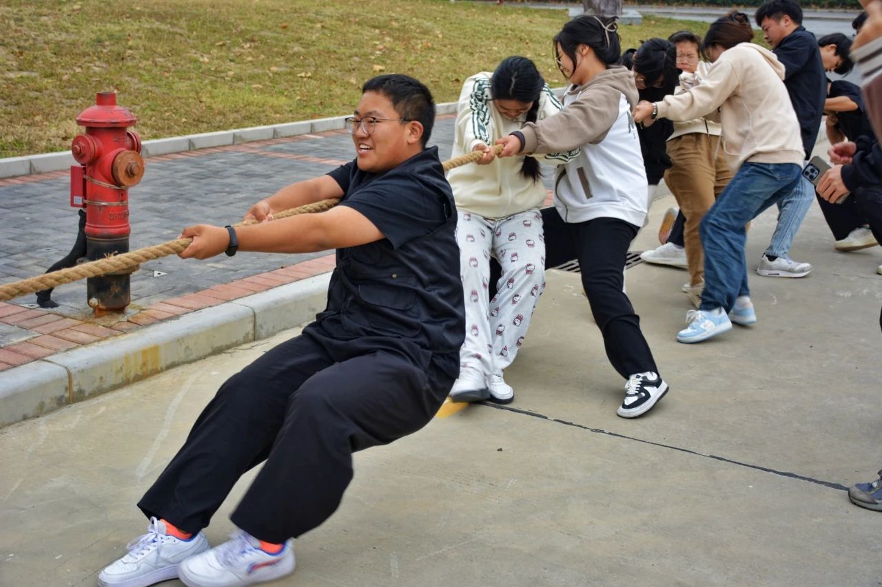 百米冲刺中,运动员们如离弦之箭般飞奔而出,每一次起跳和着陆都凝聚着力量与速度的完美结合。跳远选手们站在起跳线前,全力加速奔跑。在起跳的瞬间,身体如腾空而起,力求更远的距离。沙坑中留下的是他们拼搏的痕迹,也是力量与技巧完美结合的见证。跳绳赛场上,选手们双脚轻快地跳动,节奏明快而稳定,每一次跳跃,都充满了活力,他们用自己的精彩表现,为我们带来了一场视觉的盛宴。拔河比赛中,队员们充满节奏的呐喊声此起彼伏,他们紧握麻绳,压低身姿,铆足了劲,涨红了脸,用尽全力参与较量,处处展现出我院学子“拼”的精神、“闯”的劲头。在20人21足赛事中,多支队伍凭借多次训练培养的默契一股气冲到了终点,展现了团队凝聚力和良好的精神风貌。同学们在欢声笑语中增进了解,在汗水与努力中收获友谊。