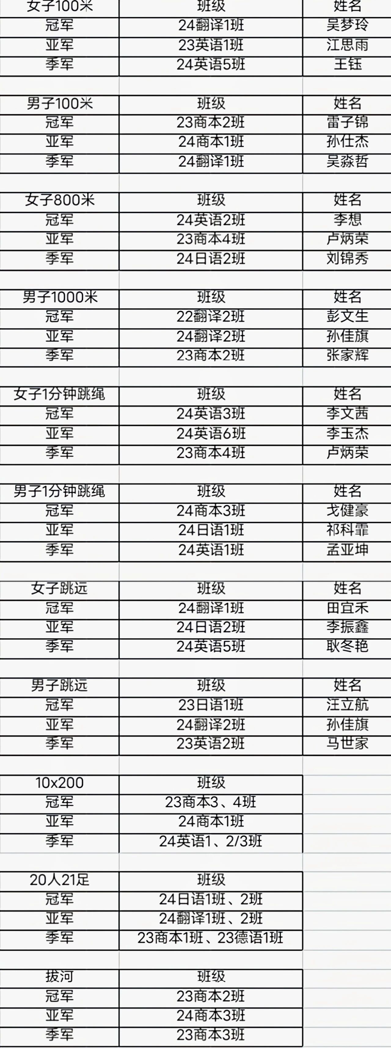 在学院的大力支持及全体运动员、裁判员、工作人员的共同努力下,我院秋季运动会闭幕式圆满结束。学院对各项活动涌现出的优秀团体和个人进行总结表彰。以下是本次秋季运动会获奖名单。