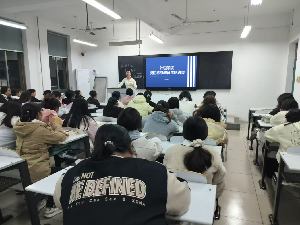 为进一步加强学生思想品德教育,弘扬优良道德风尚,引导学生知恩、感恩,并把感恩之情化为学习中自强不息、顽强拼搏的励志精神,近期,外语学院各班级围绕“资助感恩”主题开展了形式多样的主题班会活动,班会由各班辅导员主持。