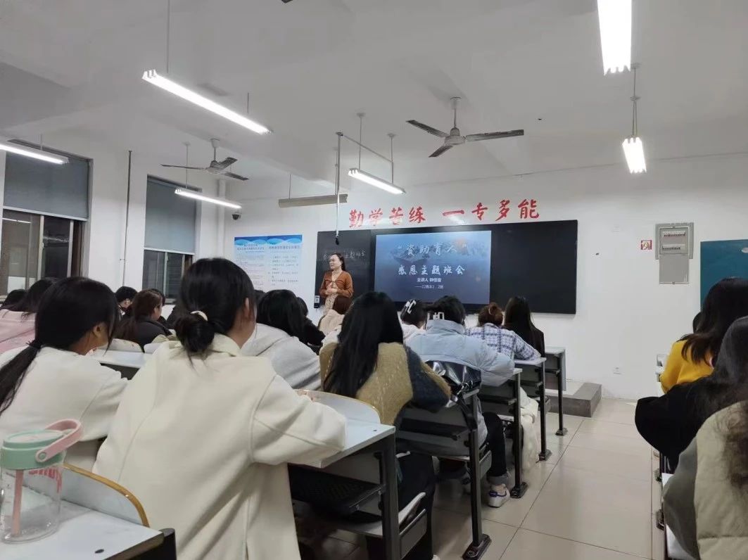 各班级以“感恩”为主线,内容涵盖“感恩父母,相敬相爱”、“感恩老师,相伴相携”、“感恩同学,相知相助”、“感恩国家,相依相守”等环节。引导学生树立感恩、报恩的崇高美德,培养学生的感恩情怀,将感恩内化于心外化于行。班会中宣讲学校各类资助政策;班级获得国家助学金、国家励志奖学金的学生,分享自己在校的学习、生活与收获、感悟;班级其他同学也交流讨论身边发生的诚信、感恩故事。