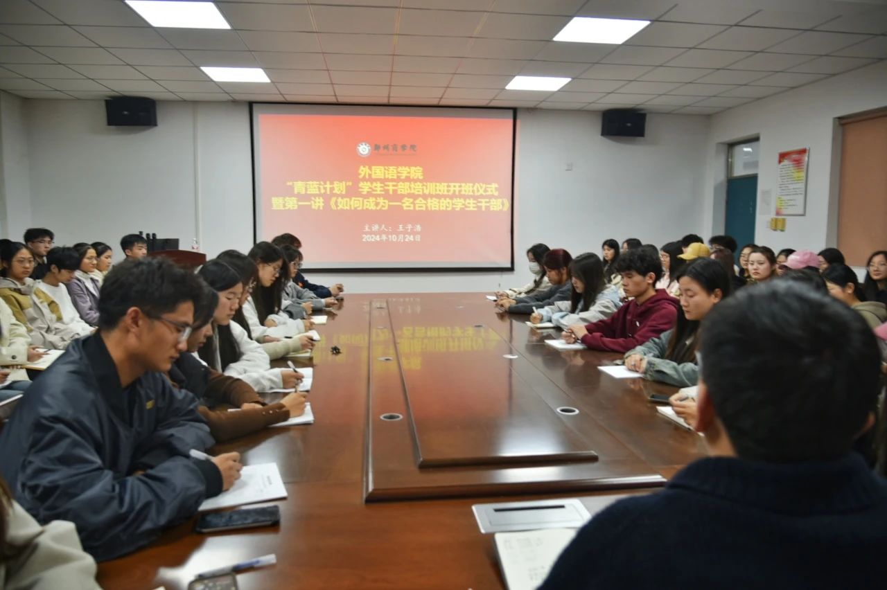 为进一步提高学生干部的综合素质和工作能力,增强学生干部的责任感与服务意识,更好地发挥服务同学的作用,10月24日晚,我院于外语楼209会议室开展“青蓝计划”学生干部培训班开班仪式暨第一讲《如何成为一名合格的学生干部》。本次培训由团委书记王子浩主讲,学生干部全体成员参会。