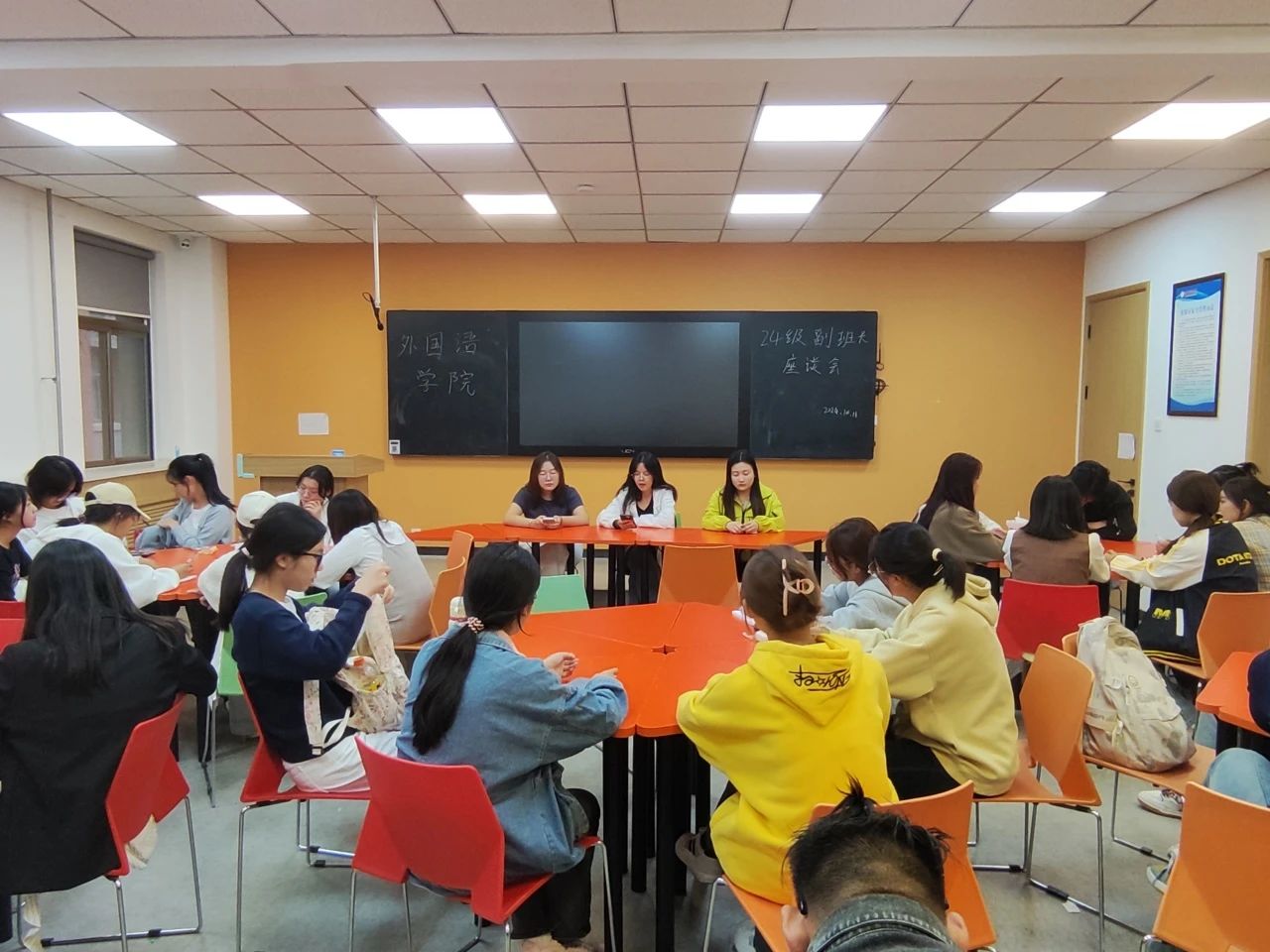 为帮助2024级全体副班长更加明确职责,确保纪检部后续早读检查和课堂巡查的顺利开展,我院于10月11日下午在W117召开外国语学院24级副班长座谈会,本次座谈会全体2024级副班长和纪检部工作人员参加。