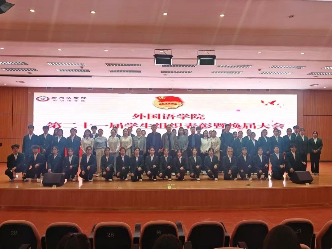 为推进外国语学院学生组织建设,发挥学生干部服务职能,增强学生组织队伍凝聚力,为学生会注入更多新的活力。10月16日19:00,我院于图书馆一楼报告厅隆重召开第二十一届学生组织表彰暨换届大会。我院党委书记王克志、团委书记王子浩、全体辅导员、二十一届学生组织全体成员、24级助理辅导员、三下乡先进个人、先进集体、二十届优秀学生干部、24级主要班委参会,本次会议由我院第二十一届团委副书记于吉增主持。