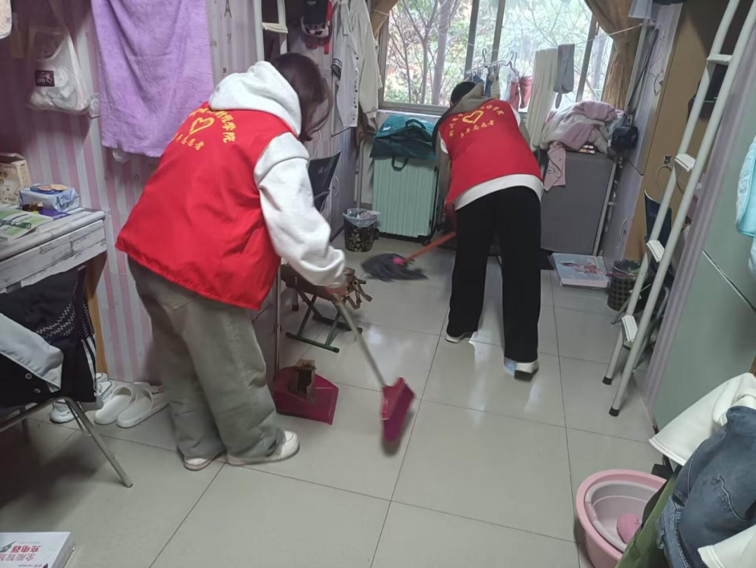 在打扫过程中,我院学生充分发挥了不怕苦不怕累精神,秉持着“分工合作,人人动手,大清扫,无死角”的原则,对宿舍进行了彻底大扫除,同时自查了宿舍安全隐患,努力把宿舍打造成为温暖、整洁、舒适、安全的寝室小家。