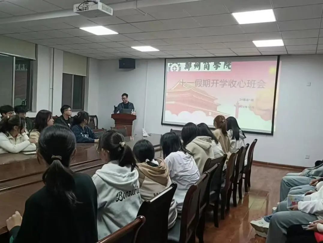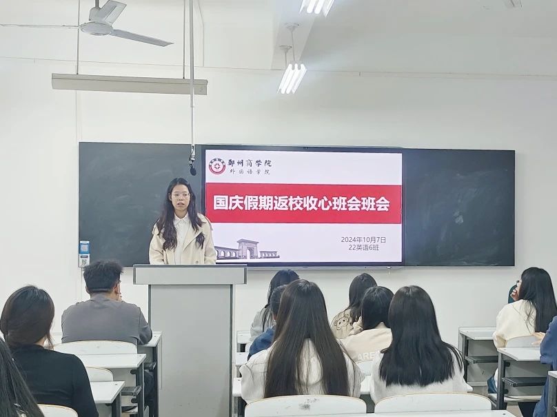 为督促学生整理好身心状态,以崭新的风貌投入到接下来的学习生活中,10月7日,外语学院在外语楼组织开展国庆节后收心班会,本次班会由各班级辅导员主持。