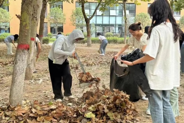劳动教育一直是beat365始终坚持的特色教育,为落实学校劳动教育,深化劳动教育理念,在阳光正好的日子里,9月12日下午,由外语学院辅导员钟佳音老师带队,80名2022级商务英语专业学生在beat365行政楼南侧小树林参加团体劳动——清扫校园落叶。