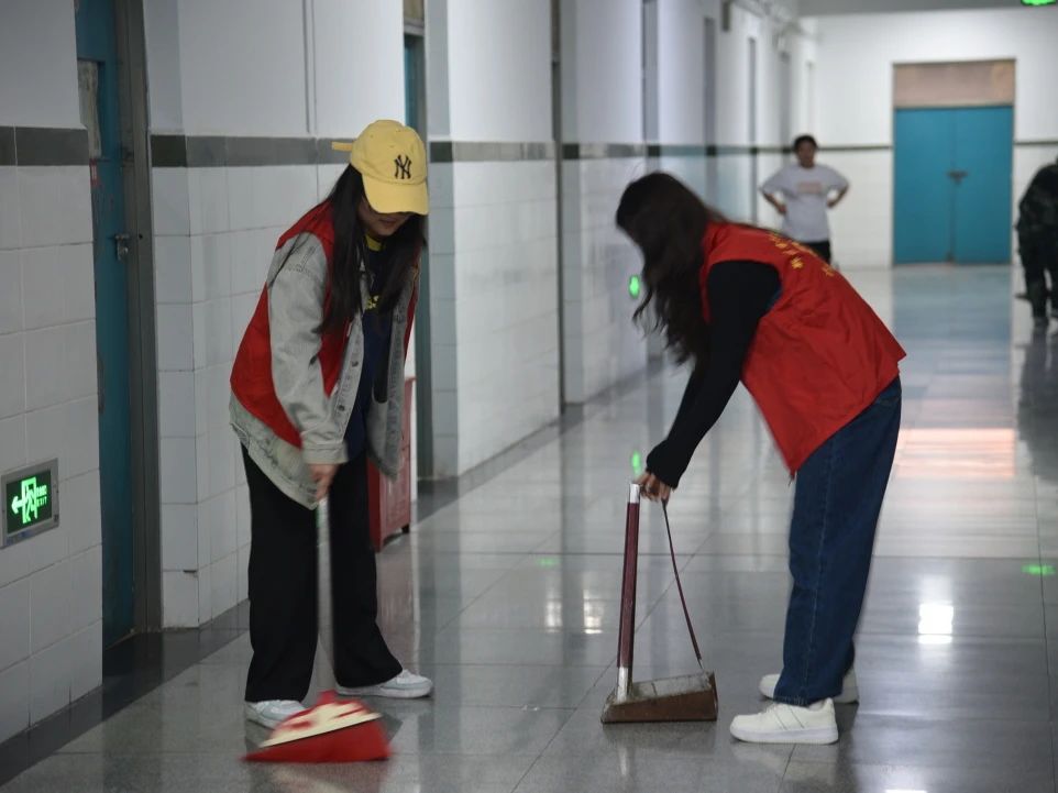 清扫活动开始,各学生干部和军训负责人进行区域和工作分配,随后深入到宿舍楼之间,迅速开展工作,耐心有序地整理归置物品、清扫地面、整理垃圾等,并且对清扫完毕的区域进行安全隐患排查。大家明确分工、默契配合,有条不紊地穿梭在宿舍楼道之间,清扫后的宿舍楼环境焕然一新。同时,在检查过程中,王克志书记就6、7、23号宿舍楼出现的问题提出整改要求。同时,在走访学生宿舍的过程中,与学生进行了亲切的交流,提醒学生要严格遵守学校的各项管理规定,落实好宿舍卫生、宿舍禁烟、文明规范、用电安全等要求。