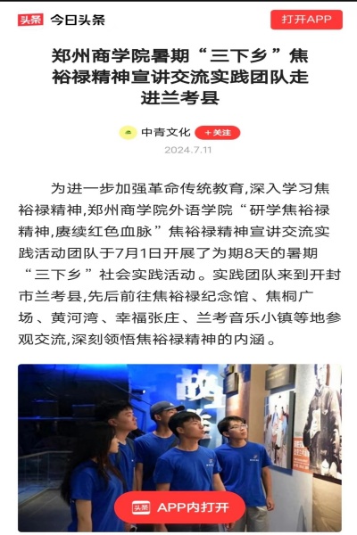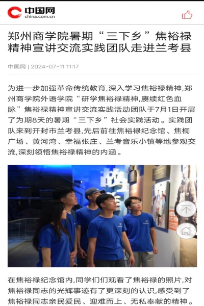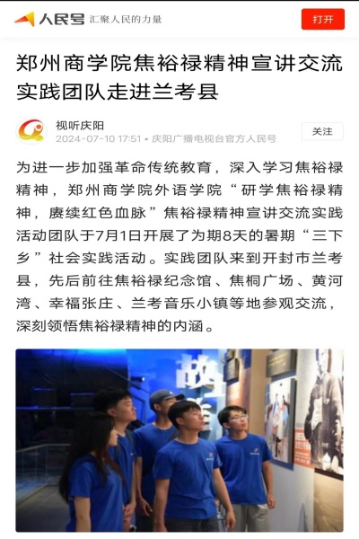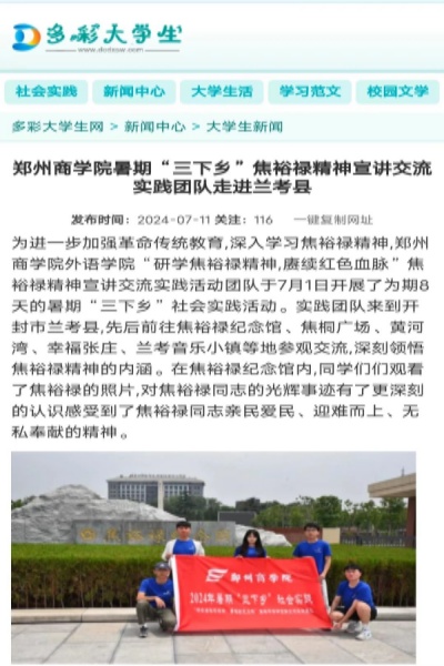 近日,我院所推出的“研学焦裕禄精神,赓续红色血脉”焦裕禄精神宣讲活动受到中原新闻网、人民日报客户端、河南青年网、多彩大学生、中国网、今日头条、大河网、华人头条、顶端新闻、大象新闻、都市头条、网易新闻等多家主流媒体报道。
