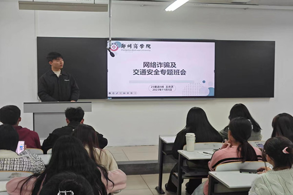 为进一步遏制网络诈骗向校园渗透,加强对学生法治与交通安全的教育与管理,进一步引导学生增强安全防范意识和安全防护能力。11月5日下午,我院于外语楼召开了“防网络诈骗,学交通安全”主题班会。