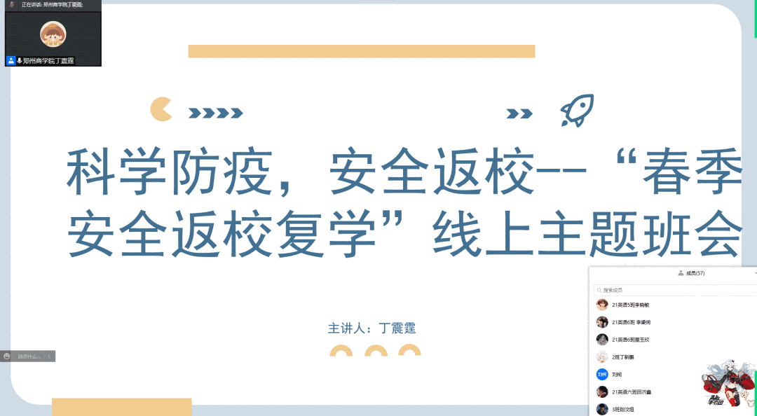 寒假假期逐渐落下帷幕,新的一学期即将到来。2月22日,外语学院各班召开了2022年春季学期安全返校线上班会。提醒同学们按时返校,并核查自己的健康码、行程码是否有异常情况,如有异常需要及时告知辅导员并暂缓返校。返校前自行进行核酸检测;返校途中做好个人防护、与家长保持联系;返校后按时参加校内全员核酸检测,确保学生安全。
