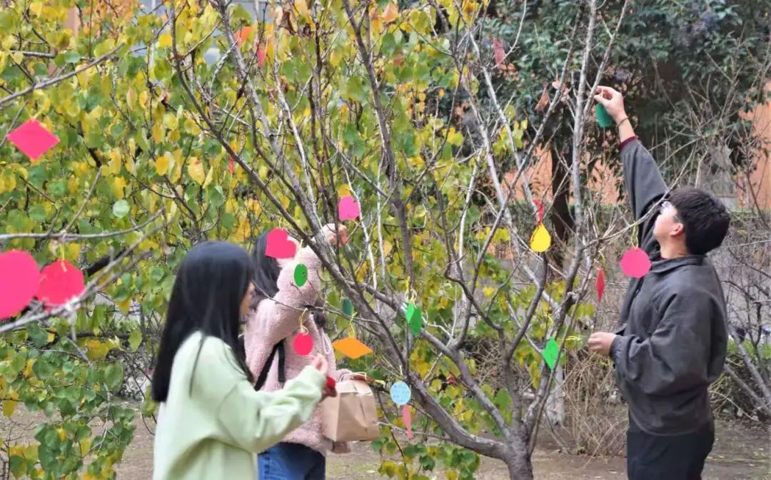 在活动期间,活动参与者可现场联系自己的家人朋友,表达对其的感恩与感谢,或抽取制定好的卡片,对卡片上的人说出一段久埋心底的话。除此之外,活动参与者还在彩色卡片上写下对父母的感激,折成爱心挂在感恩树上,整个过程温情满满。